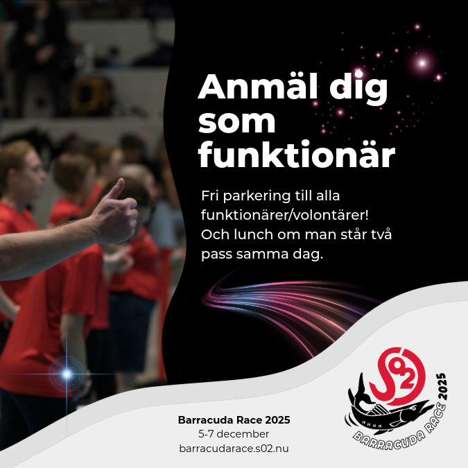 Nu är det dags för S02s höjdpunkt - Barracuda Race den 5-7 december. För att kunna genomföra tävlingen behöver vi minst 24 funktionärer per pass. Vi behöver också flera volontärer som kan hjälpa till med olika uppgifter för att få tävlingen att fungera.